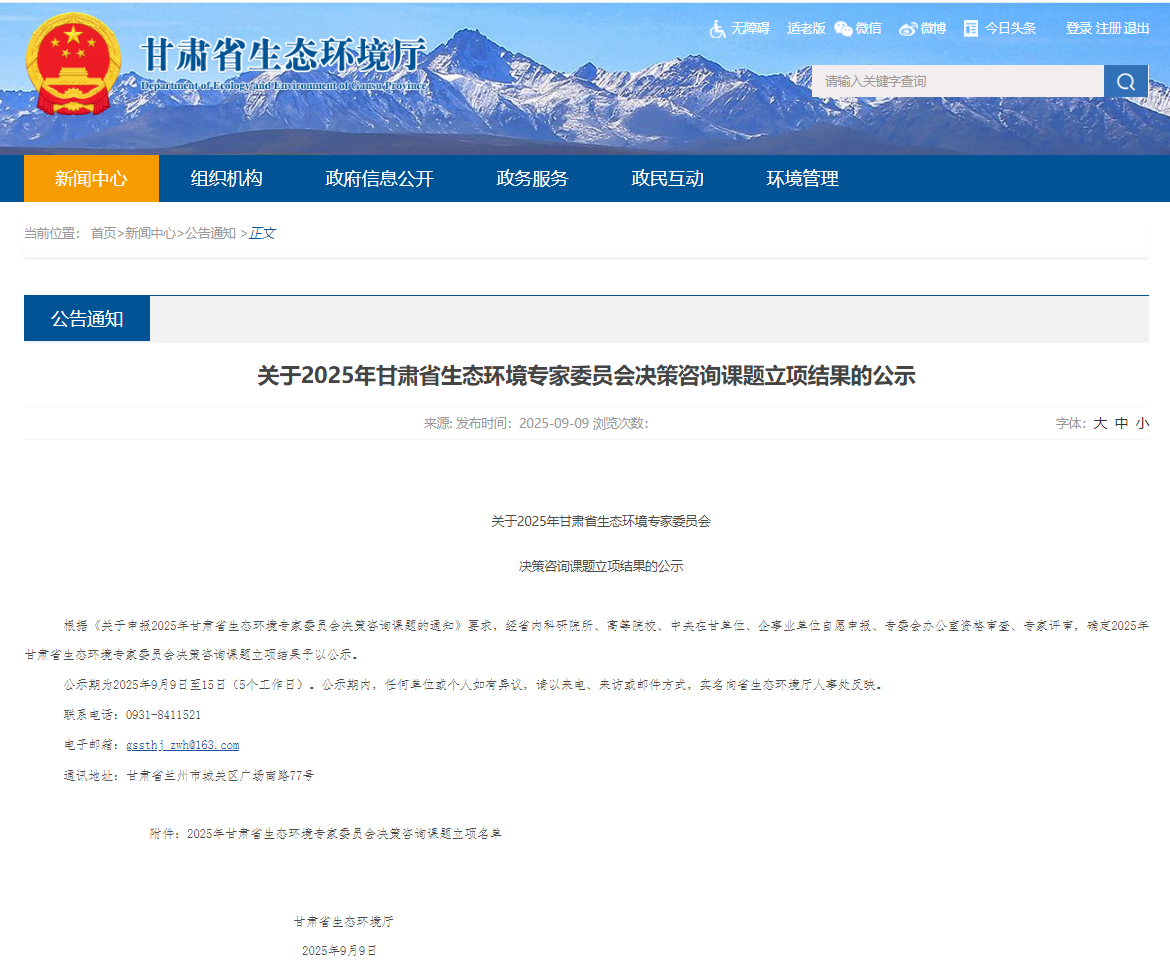 我單位申報(bào)的2025年甘肅省生態(tài)環(huán)境專家委員會(huì)決策咨詢課題獲批立項(xiàng)